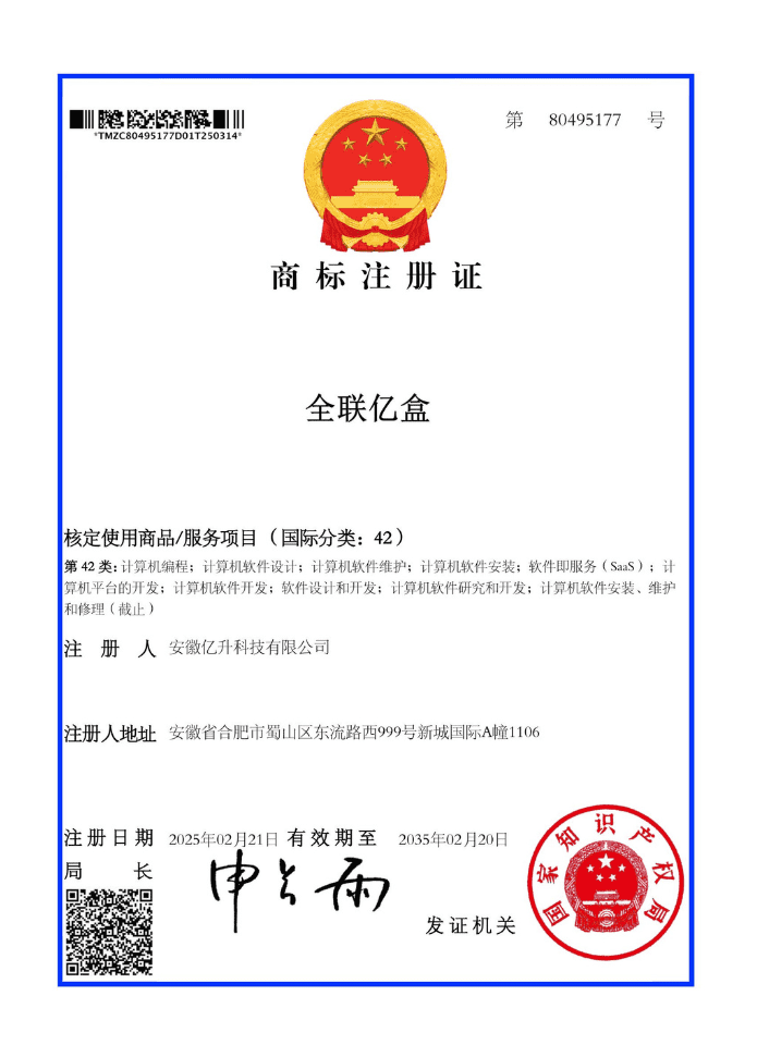 合肥全联亿盒科技有限公司成立于2025年5月20日,管理总部坐落于科技之都——安徽合肥。